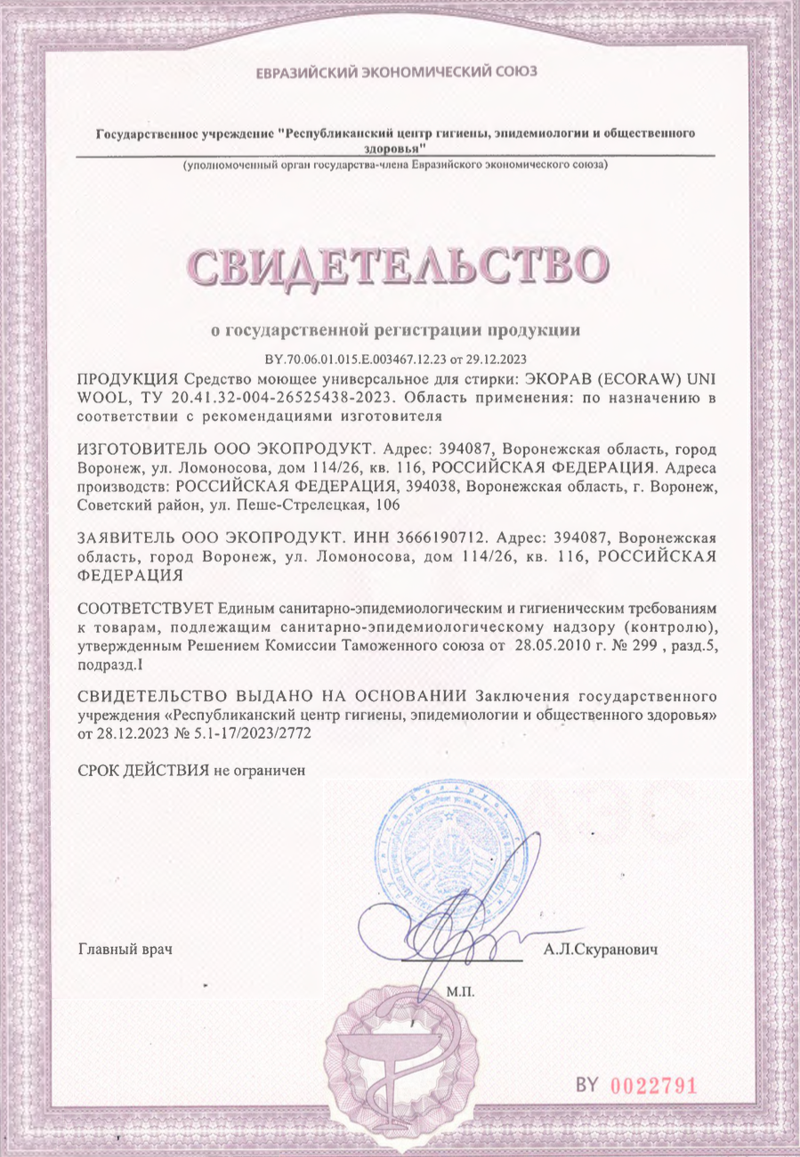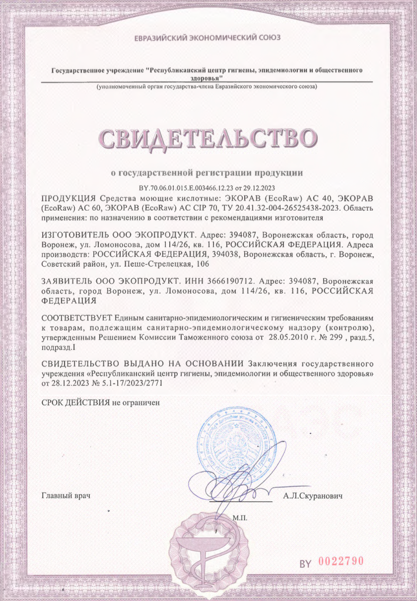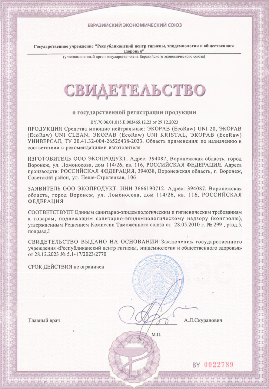 ООО «ЭКОПРОДУКТ» является производителем моющих средств с дезинфицирующим эффектом торговой марки ECORAW